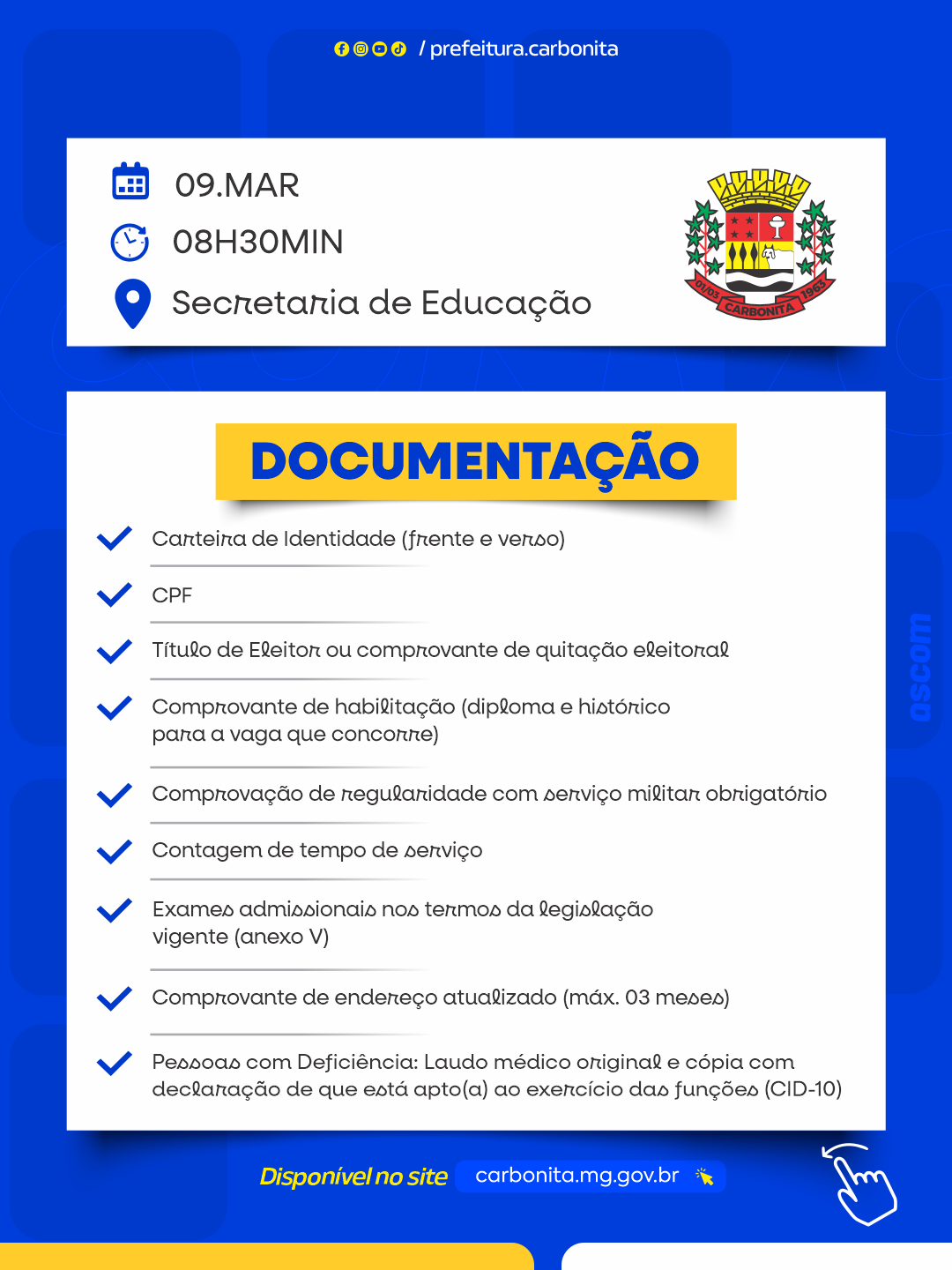 Prefeitura de Carbonita - Trabalhando por amor ao nosso povo!